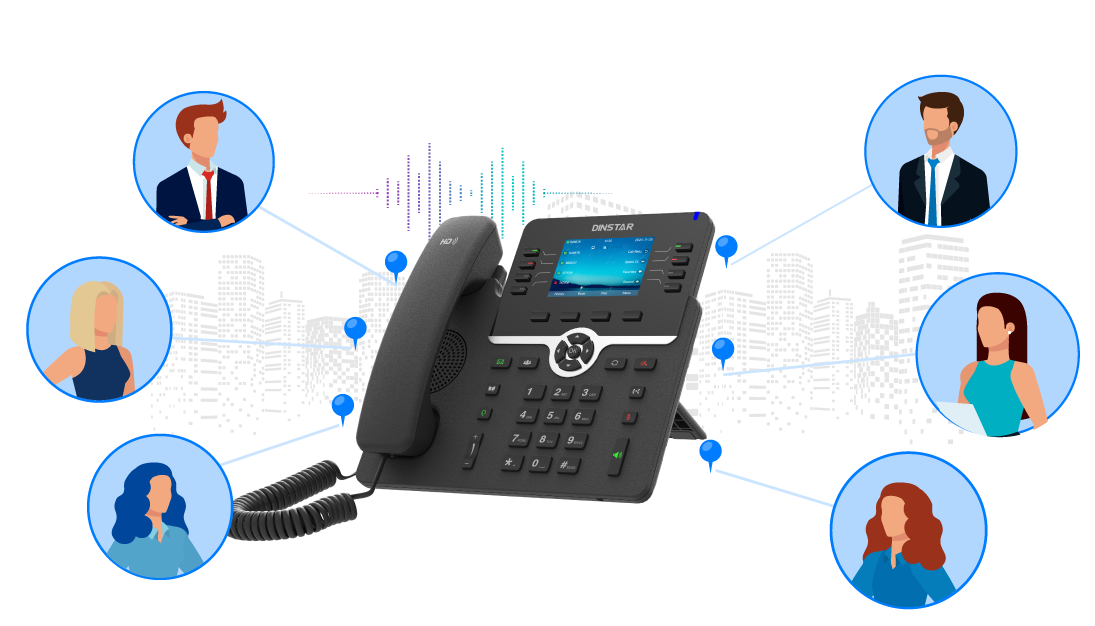 C64 Series IP Phone facilitates 6-way audio conferencing, allowing the conference organizer to invite up to 5 participants. This enhances collaboration across various departments or organizations, improving efficiency.