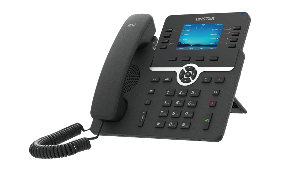 The Dinstar C64G/GP is a high-end HD IP Phone designed for business use. With its elegant appearance and outstanding performance, it is suitable for various environments. The 3.5”320 x 480-pixel graphical LCD with backlight provides excellent visual clarity. The phone offers superior HD voice quality and a range of system functions to meet diverse user needs. Featuring dual Gigabit Ethernet ports, the C64G/GP is easy to install, configure, and use. It supports 16 SIP accounts and 6-way conferencing, seamlessly integrating with IP PBX systems to deliver rich business functionality.